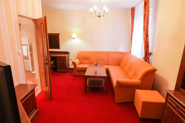 Jedná se o vyšší variantu pětilůžkového pokoje, zde navíc s obývacím pokojem s velkým gaučem a plazmovou TV, zrenovovanou koupelnou a dvěma ložnicemi, opět v jedné ložnici manželská postel rozměru 140cm×200 cm a v druhé tři jednolůžkové postele. Možnost ubytování 1-5 osob.