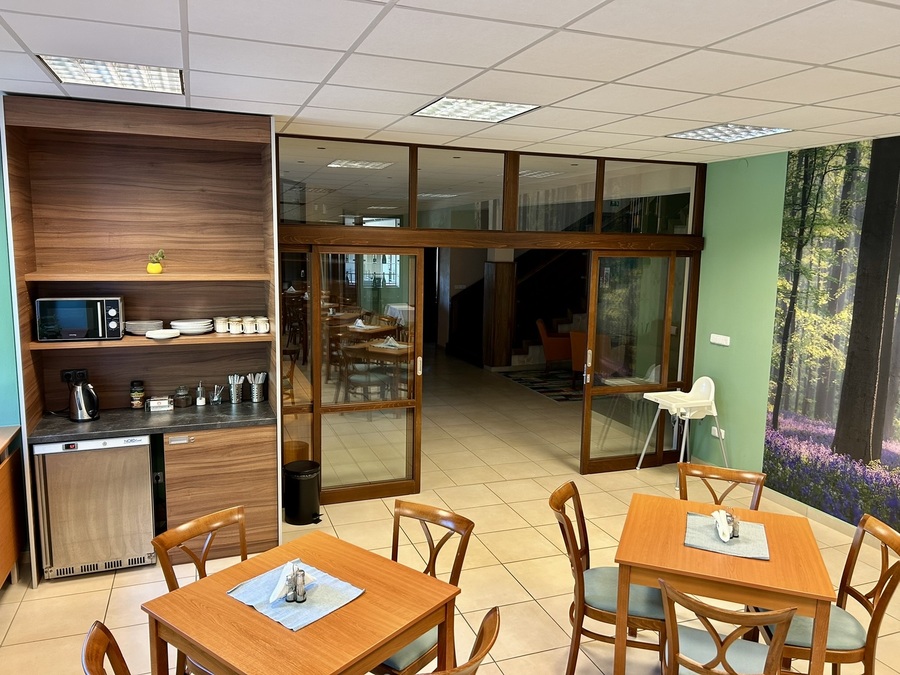 Hned po vstupu do jídelny našeho penzionu na vás čeká společná kuchyňka, která je k dispozici nepřetržitě všem našim ubytovaným hostům.