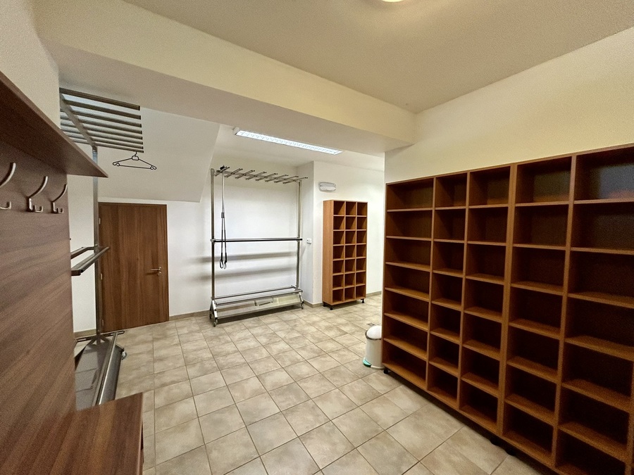 Najdete ji v přízemí, vejdete prosklenými dveřmi s nápisem „Kolárna / Lyžárna“, které se nachází mezi hlavními vchodovými dveřmi a dřevěnými dveřmi garáže.