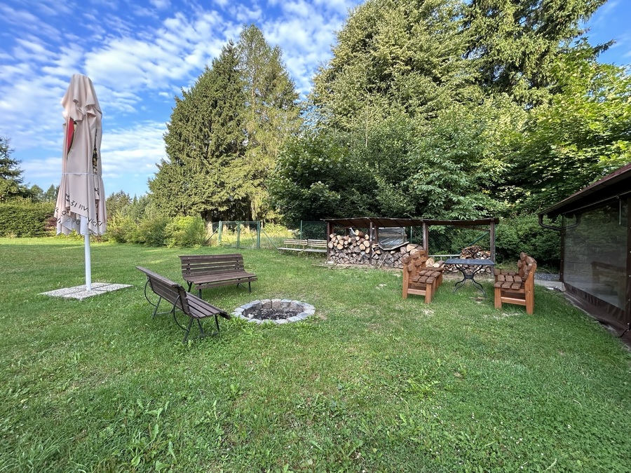 Zahrada penzionu je ideálním místem pro odpočinek a trávení volného času. Je prostorná, zelená a klidná, což ji činí perfektním místem pro relaxaci. Součástí zahrady je ohniště, u kterého můžete strávit příjemné chvíle u plápolajícího ohně. K dispozici je také nachystané dřevo, takže si můžete kdykoliv připravit táborák.